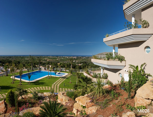 Beautiful penthouse with a spacious terrace and spectacular views of the sea and the mountains, located in the exclusive Las Mimosas complex within the La Sella Residential area. Built in 2005, the gated Las Mimosas complex impresses with its timeless design, carefully considered design elements, and a beautifully landscaped setting with a swimming pool. It consists of three blocks of terraced apartments whose generous terraces, conceived as a natural extension of the interior living space, invite residents to fully enjoy the Mediterranean lifestyle and truly privileged views. The penthouse is situated on the fifth floor and is accessible by lift. It offers a spacious entrance hall leading to an elegant and generously sized living-dining room. Like the two bedrooms (one en-suite) that flank it, this space features large French doors opening onto the terrace. The kitchen is separate and includes a laundry area, as well as windows with pleasant views of the lush rear garden. All rooms are filled with natural light, a quality further enhanced by marble flooring and white lacquered carpentry. The property includes a covered parking space at the foot of the building and a 15 m² storage room located on the third floor. Further Details Underfloor heating, and central air conditioning (heating, cooling, dry and fan modes). Double glazing, electric shutters, satellite TV, fibre-glass internet, video intercom system, communal saltwater garden, and 24/7 security service. Location The Las Mimosas complex is conveniently located near the leisure and services center, which offers a restaurant/café, pharmacy, tourist rental and maintenance agency, mini-market, and tennis and padel courts. The nearby village of La Xara and the La Marina Alta shopping center are approximately a 7-minute drive away, while Dénia, Jávea, and their beaches can be reached in about 15–20 minutes by car. At the main entrance to La Sella is the Syncrosfera Fitness & Health Boutique Hotel, featuring a gym, semi-Olympic swimming pool, and restaurant. Adjacent to the La Sella Residential area lies the La Sella Golf Resort, home to the Marriott Hotel & Spa and the 27-hole La Sella golf course, as well as a diverse gastronomic offering.